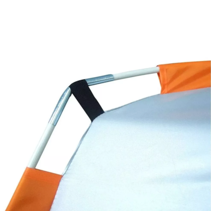 A barraca Pampa é leve, resistente, fácil de armar e compacta. O teto é 100% poliéster 190T impermeabilizado com poliuretano para 1.000 mm de coluna dágua e a estrutura em varetas de fibra de vidro com diâmetro 8,5mm integradas por elástico interno.