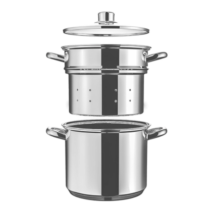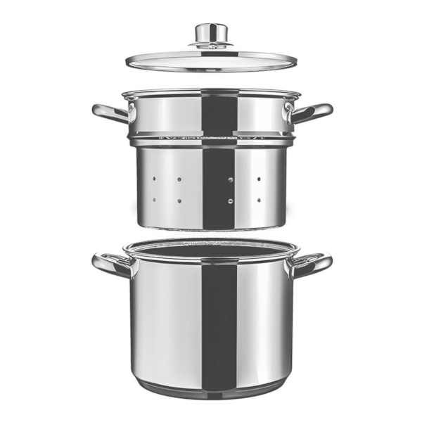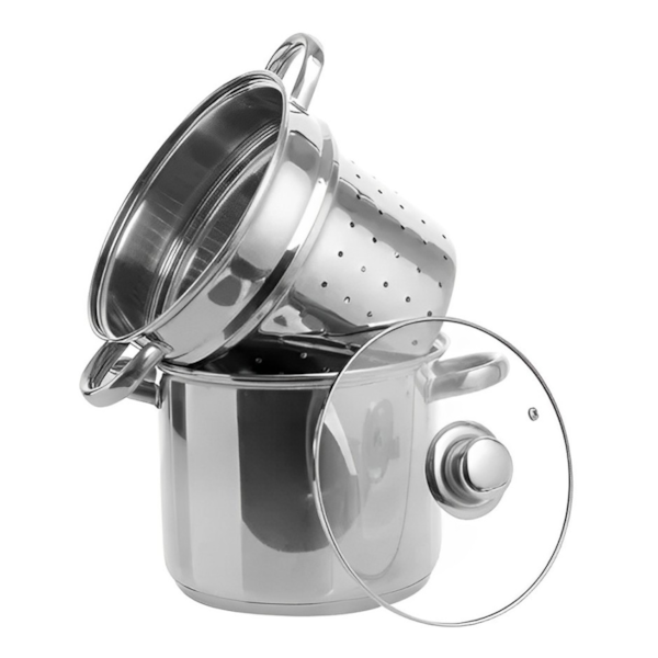 O caldeirão e o cozi são construídos em Aço Inox, o que proporciona um aquecimento uniforme e rápido, garantindo um cozimento perfeito das massas. Suas alças são ergonômicas e termorresistentes, proporcionando maior conforto e segurança durante o manuseio.