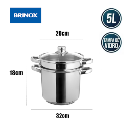 Com um design elegante e funcional, este conjunto é composto por um caldeirão com diâmetro de 20 centímetros e capacidade para 5 litros, e um cozi com dimensões de 20 x 16,8 centímetros e capacidade para 5,0 litros.