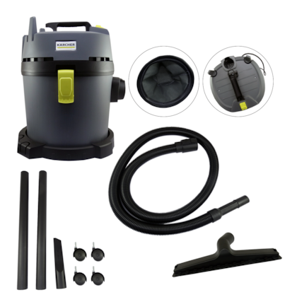 Aspirador profissional que permite aspirar pós e líquidos, sem a necessidade de remover o filtro permanente ou desligar o equipamento. O Aspirador de pó e líquido NT 585 da Karcher, possui design robusto e moderno, permite que o usuário abra facilmente o reservatório e elimine as sujeiras, limpando com facilidade o reservatório com capacidade para 15 litros.